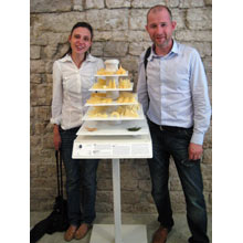 Viene così rappresentata una colonna vertebrale funzionale in ceramica che sostiene dei vassoi in vetro utilizzati per esporre i derivati del latte. Ogni derivato verte attorno alla materia prima, il latte.